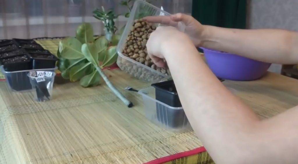 - подготовка контейнеров. Семена адениума можно высаживать в рассадные кассеты или даже в одноразовые пластиковые стаканчики. На дне емкости следует обязательно проделать дренажные отверстия;