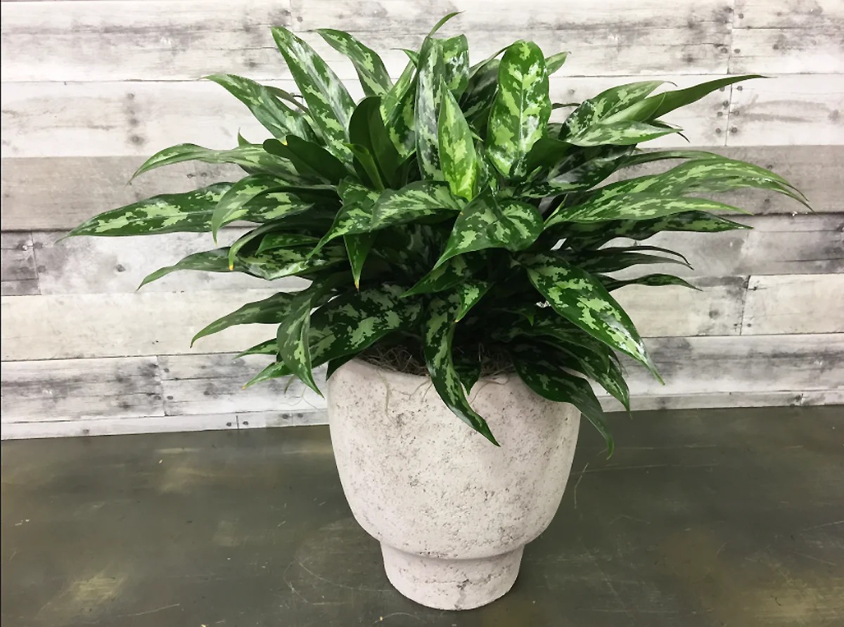 Привлекательный неприхотливый комнатный цветок, у которого большие блестящие кожистые листья всегда зеленого оттенка с мраморными пятнистыми вкраплениями кремового и серого цветов на коротких стеблях. Название этого цветка не случайно греческого aglaia означает «блеск». Аглаонемы можно выращивать методом гидропоники, но в воде они должны расти с самого начала.