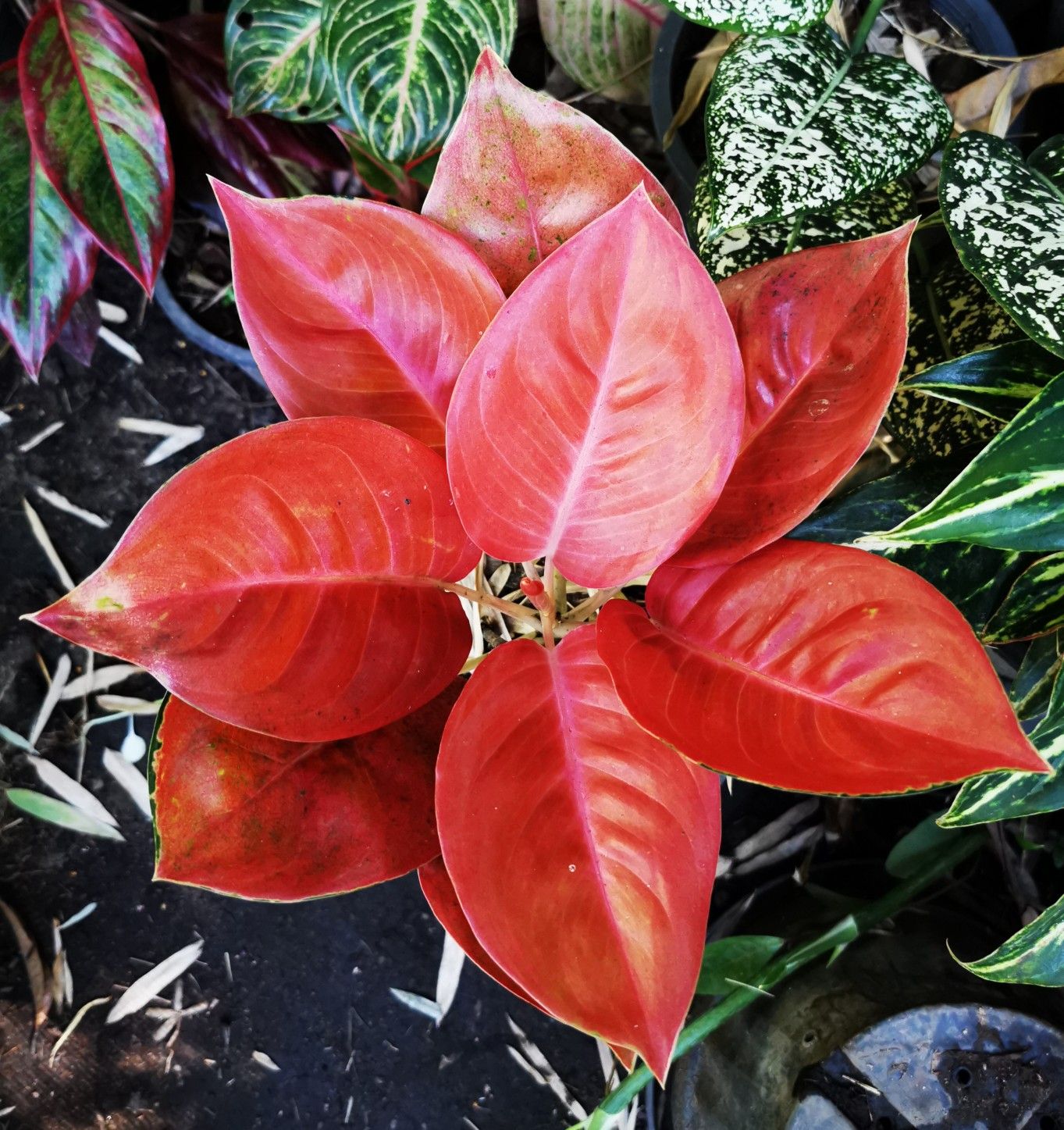 - Аглаонема Крит. В начале цвет насыщенно-красный, но со временем меняется на зеленый. В процессе получается очень необычная и привлекательная расцветка. Прожилки у листочков навсегда остаются бардовыми.