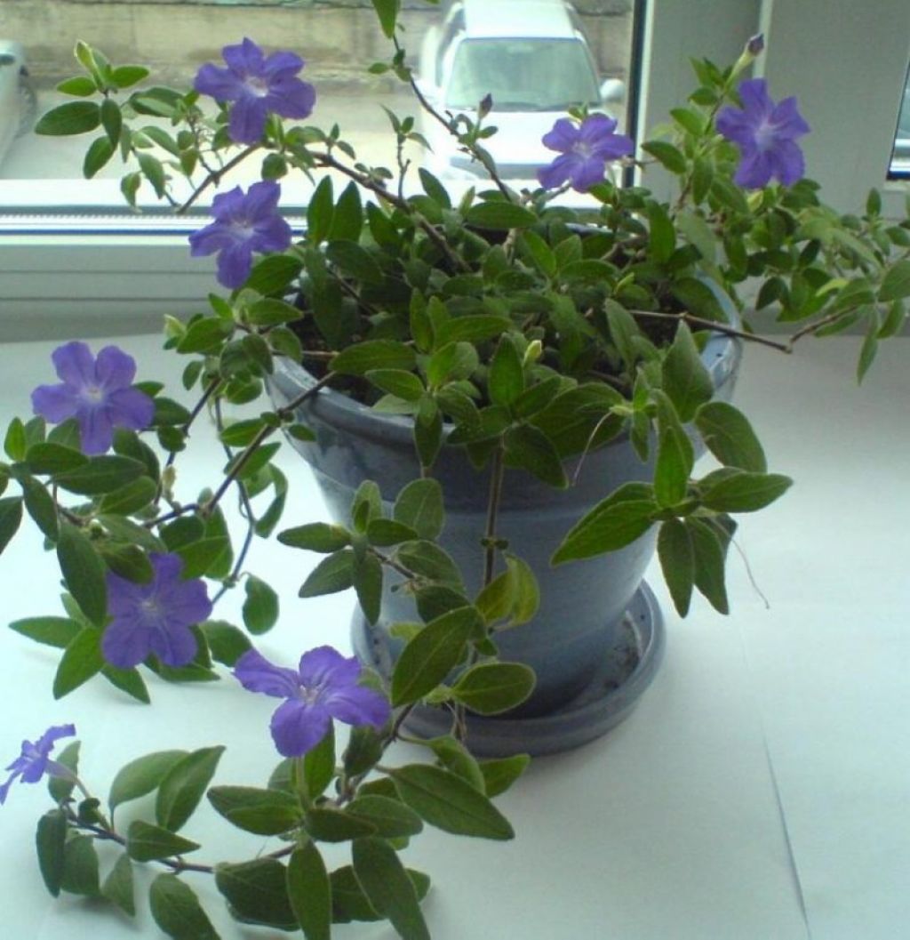 Вечнозеленый полукустарник родом из Южной Африки с яйцевидно-продолговатыми, заостренными к вершине, короткочерешковыми и мелкозубчатыми по краям листьями и белыми, розовыми или сиреневыми цветками с фиолетовыми жилками.
