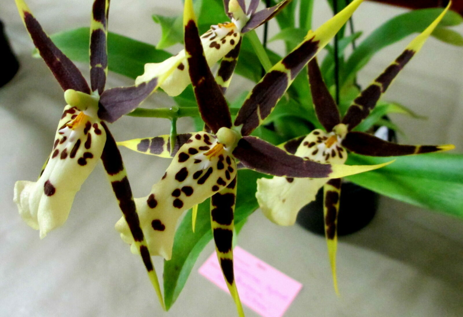 Этот вид орхидеи-паук считают одним из наименее требовательных. При правильном содержании цветка он будет распускать бутоны на протяжении всего года. Высота может достигать 50 см. Бутоны:
