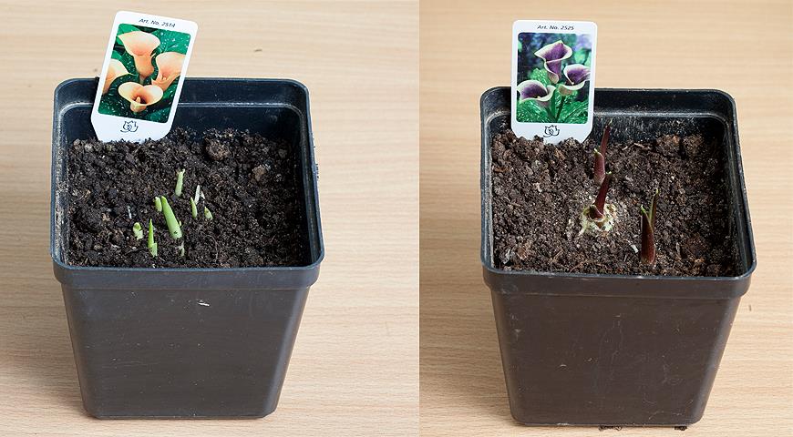 В конце февраля – начале марта перед высадкой в грунт клубни каллы высаживают на проращивание. Если клубни немного увяли, перед посадкой подержите их 2–3 дня во влажной ткани, пока они вновь не станут упругими и почки явно не обозначатся на поверхности клубней.