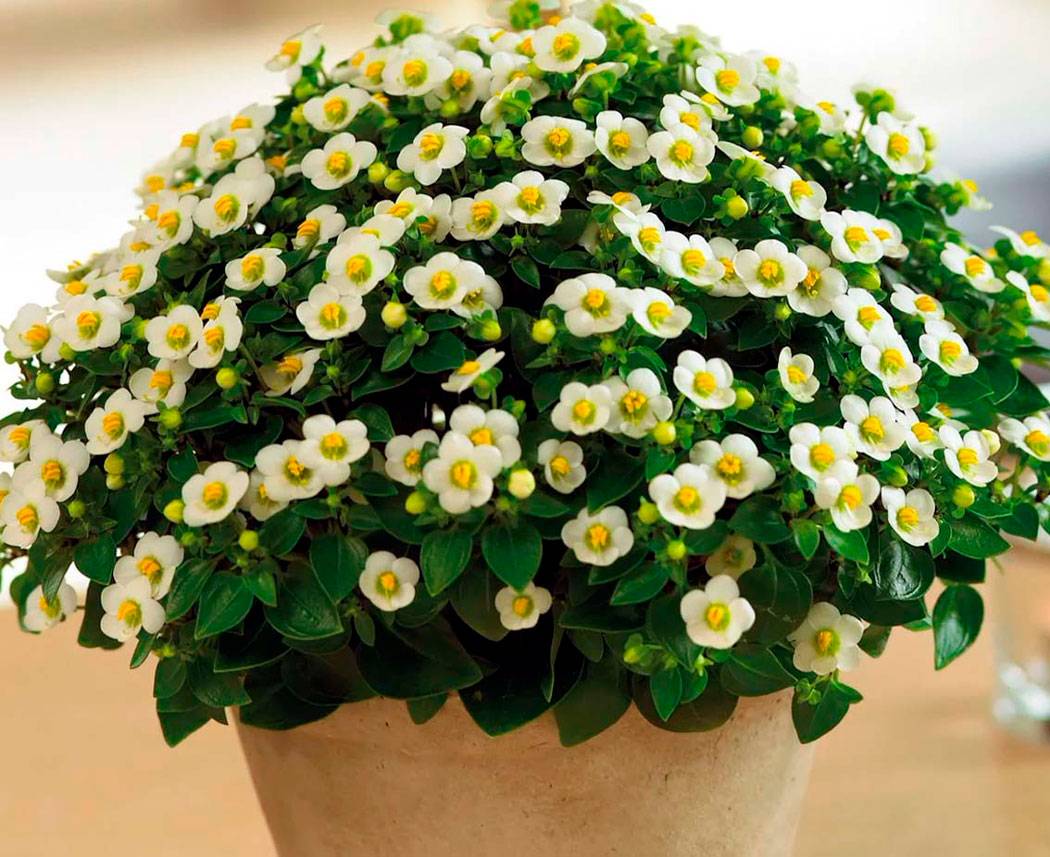Экзакум белая звезда – является невысоким, кустистым растением, имеющим треугольно-овальные листовые пластины со множеством белых цветков. Время цветения персидской фиалки составляет от 6 до 8 недель. Невзирая на то, что экзакум считается двулетником, в комнатных условиях выращивают его как однолетник.