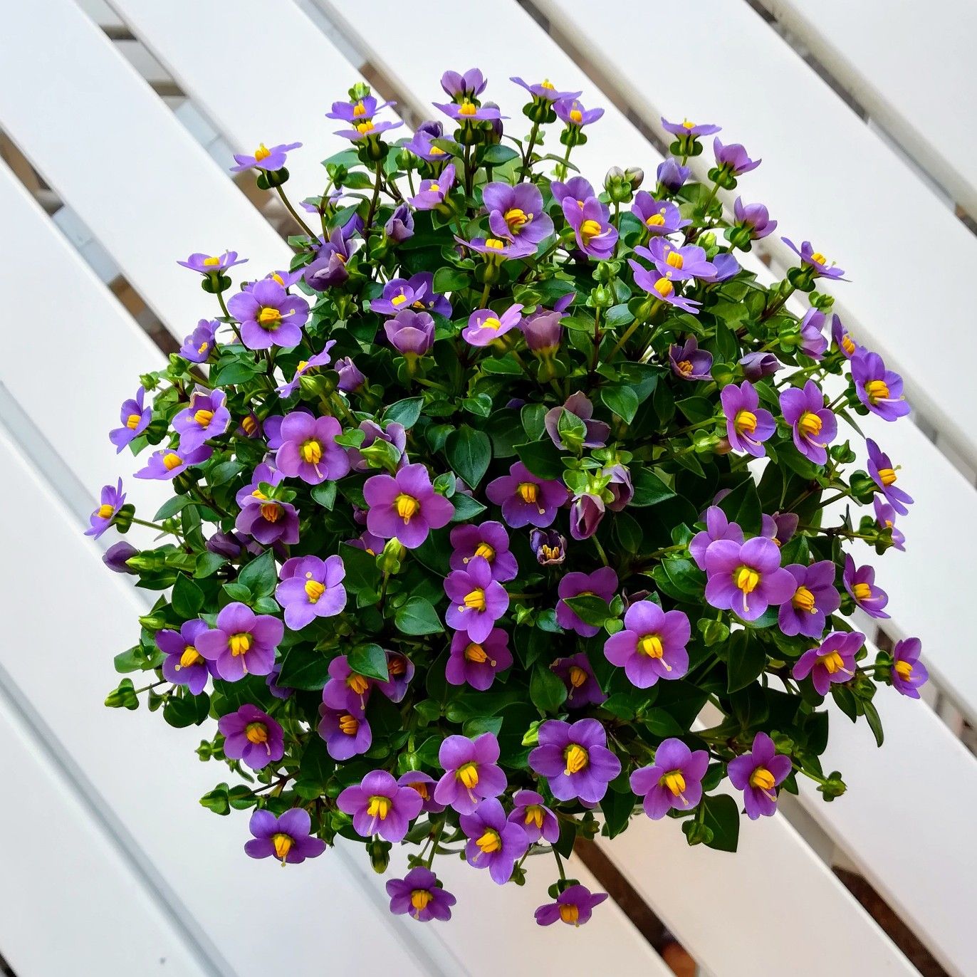 Этот сорт группа культурных растений, полученная в результате селекции в рамках низшего из известных ботанических таксонов и обладающая определённым набором характеристик (полезных или декоративных), который пользуется большой популярностью в культуре. Его используют для горшечного выращивания. Растение образует густую крону почти идеальной шарообразной формы может означать: Форма предмета — взаимное расположение границ (контуров) предмета, объекта, а также взаимное расположение точек линии. Зеленая плотная листва является превосходным фоном для маленьких цветочков синего окраса свойство предметов отражать, переизлучать и рассеивать свет, определяющее их визуальное восприятие в определённых условиях — ощущаемый человеком цвет, которые украшают насыщенно-желтые сердцевинки.