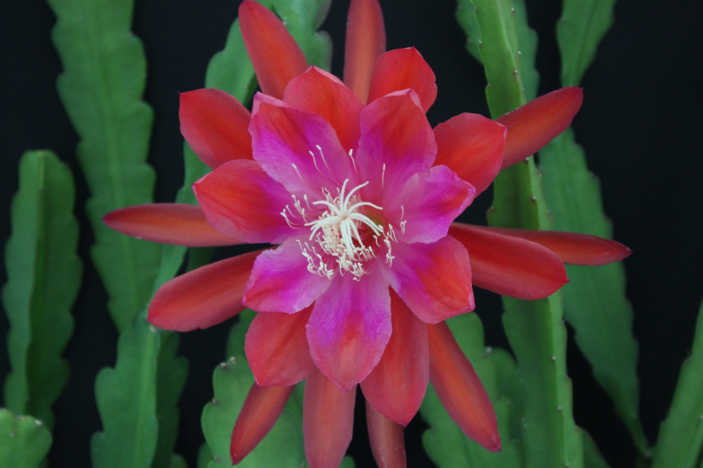 Он имеет свисающие плоские стебли, зазубренные по краям. Этот вид популярен для домашнего разведения из-за красивых ярко-красных цветов и продолжительного периода цветения.