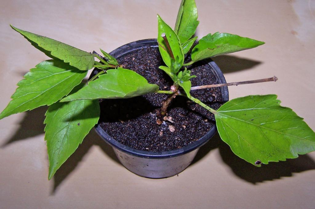 Чтобы размножить гибискус черенками, летом следует отрезать верхнюю часть на молодых побегах