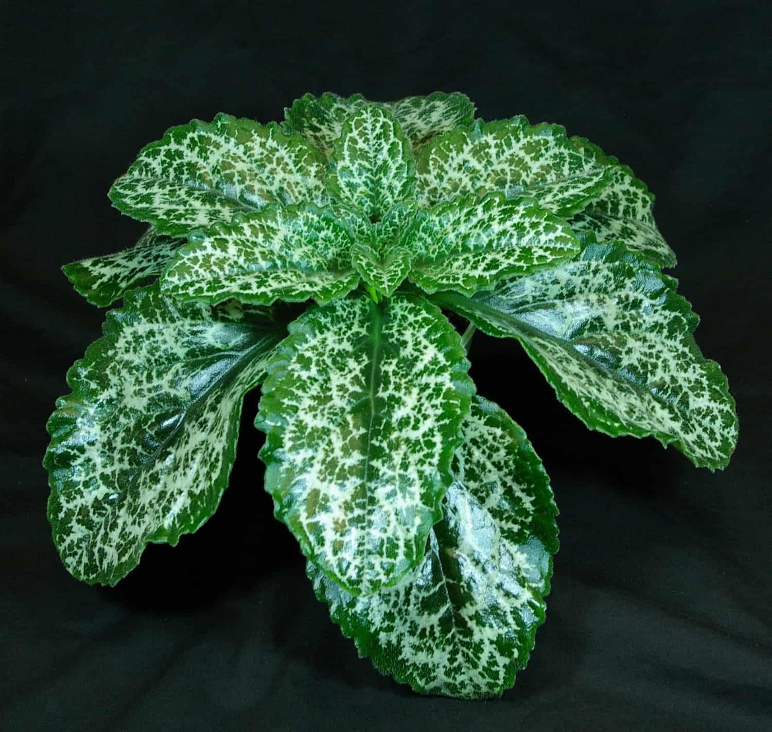 Хирита ‘Hisago’ — листья темно-зеленые с яркими серебристыми жилками и фестончатым краем;