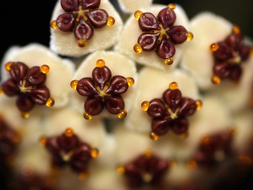 Зацветает экзотическая красавица с начала мая, и до сентября, радует своим неповторимым цветением. «Плюшевые» лепестки хойи, бывают темно-красные, вишнево-красные, желтые, оранжевые, пурпурные или почти черные, в форме звезды, все зависит от сорта и вида, вечнозеленой лианы. Сам бутон, цветет и радует садовода, около трех недель. Затем отцветает, а на его месте появляется новый цветок.