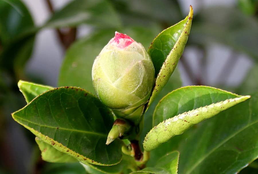Камелия японская. Бутон и листья