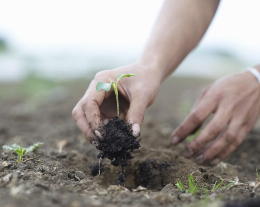 - Во избежание образования воздушных карманов грунт утрамбовывают по мере заполнения посадочного пространства, придавливая почву ладонями к земле.