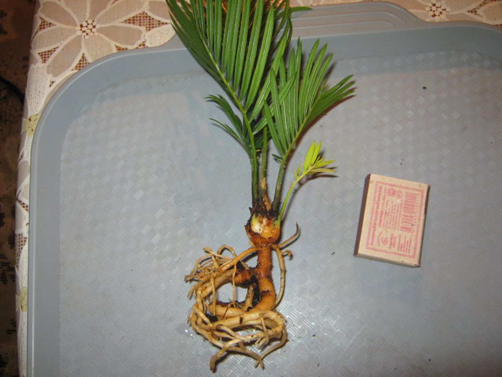 Пересадка: пальма очень не любит пересадку, поэтому пересаживают только тогда, когда корни заполнят весь горшок или кадку, и начинают вылезать за пределы емкости, т.е. примерно через 2-3 года — молодые растения, через несколько лет — старые. Почва — 2 части легкой дерновой, 2 части перегнойной, 1 часть торфяной, 2 части мелкого гравия (фракция 2-3 мм), немного древесного угля. На дно ведра или кадки дренаж не менее 5 см. При пересадке пройдитесь ножом по краю горшка, чтобы отделить земляной ком от его стенок и меньше травмировать корни. При посадке не утрамбовывайте землю руками — она постепенно осядет от поливов, и можно будет досыпать свежей земли.