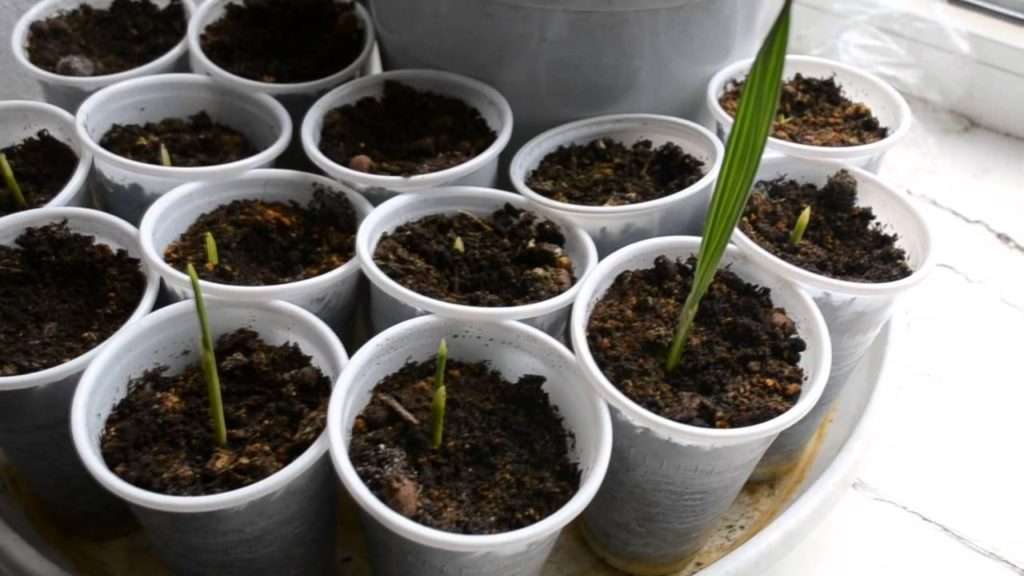 - Их можно сразу посадить в почвосмесь для пальм, но, лучше саженцы доращивать в специальном субстрате из торфа и песка.