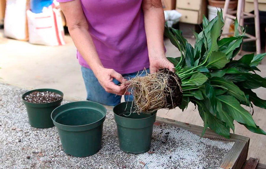 Чтобы получить новые спатифиллумы можно весной поделить растение при пересадке