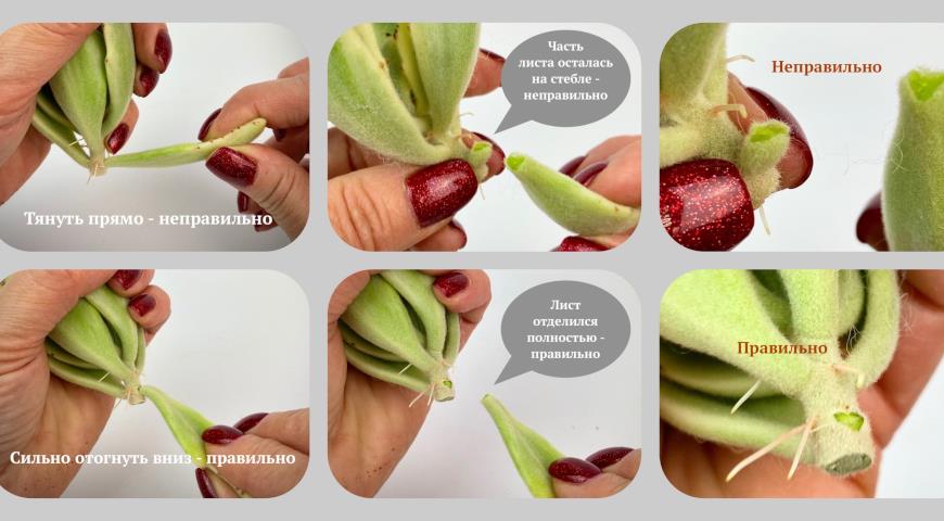 ВАЖНО! Правило для всех суккулентных растений, которые размножаются листовым черенком: чем мясистее лист, тем больше шансов на успех, суккулент с тонкими листовыми пластинами тяжело размножаются листьями, потому что лист усыхает раньше, чем дает корни