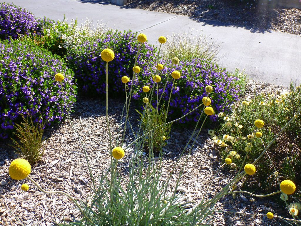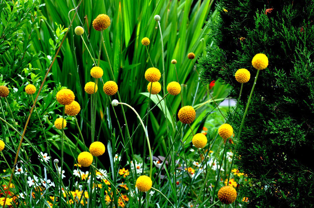 С этими культурами краспедия будет гармонировать по цвету. Желтые шарики будут великолепны на фоне зеленых лиственных растений, например, хосты.