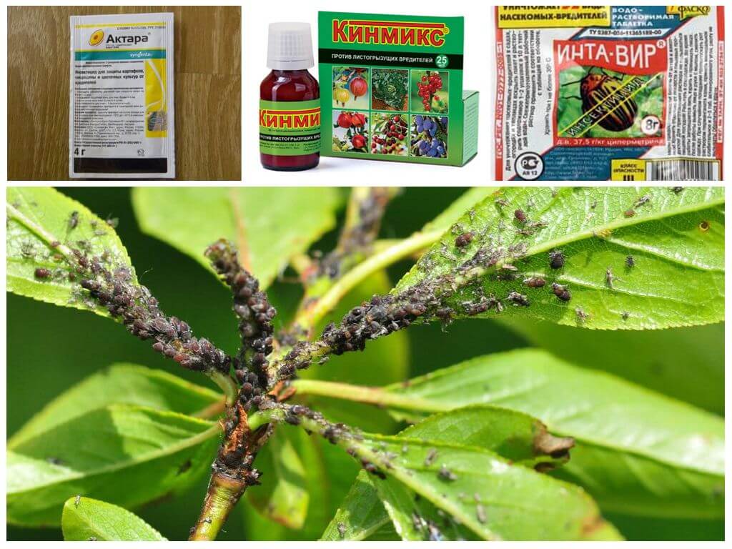 Действенные химиопрепараты от тли: Децис, Каратэ, Актеллик, Инта-вир, Неорон, Арриво, Актара.