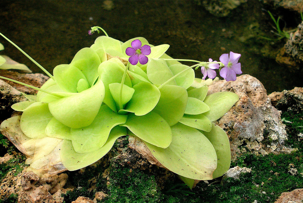 Жирянка (Pinguicula) – многолетние растения, которые несмотря на обладание статусом насекомоядной культуры, могут похвастаться наличием и настоящих корней, которые позволяют растению выживать в крайних случаях.