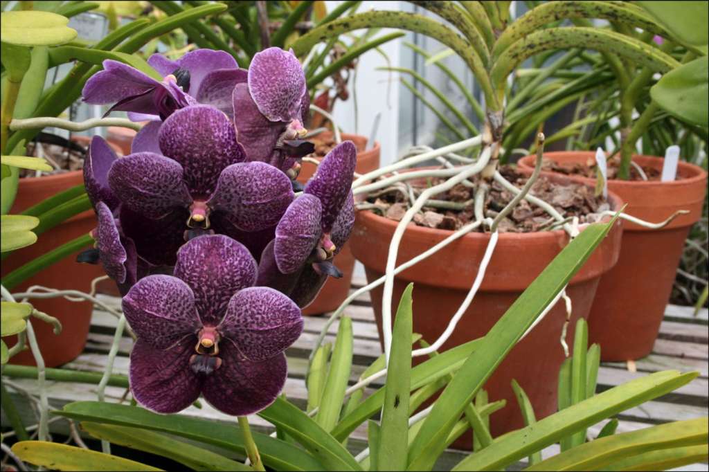 У фиолетовой орхидеи довольно мощная корневая система. При этом питательные вещества черпаются не только из грунта, но и из воздуха.
