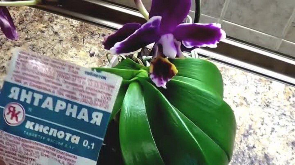 Обрабатывают цветы орхидеи перед пересаживанием на новое место. Чтобы насытить корневую систему кислородом и простимулировать ее приживание на новом месте, следует обработать корешки составом из янтарной кислоты. Для этого применяют замачивание на несколько часов.