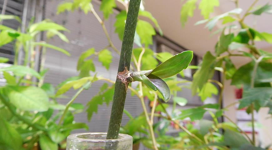 Упростить обработку позволит опудривание орхидейных черенков порошком янтарной кислоты. Порошком из 2-3 таблеток обмазывают область, из которой должны появиться корни. Обработанное растение ставят в прозрачную ёмкость, имеющую отверстия для вентиляции и подходящий для цветка субстрат. Пока не сформируются новые корешки, поливы и опрыскивания проводят в привычном режиме.