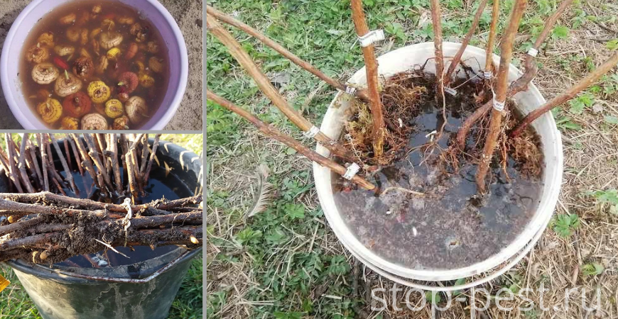 Затем, в смесь, которая получилась, опускается подземная часть растения и оставляется на 10-15 минут.