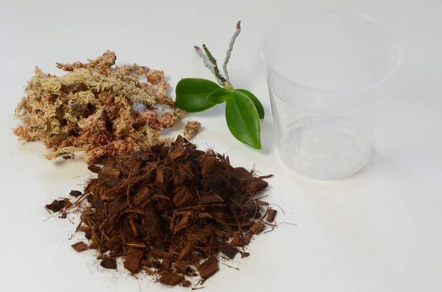 После выполнения этих рекомендаций, если на растение остались еще корни, ее высаживают в кору мелкой фракции, где она будет наращивать свою корневую систему. Если корней и листьев не было, то остатки цветка ставят в теплицу. Это, например, пластиковый 0,5 л. стакан, на дно которого кладут мох, слегка увлажненный, а сверху ставится растение таким образом, чтобы его низ не касался мокрого мха.