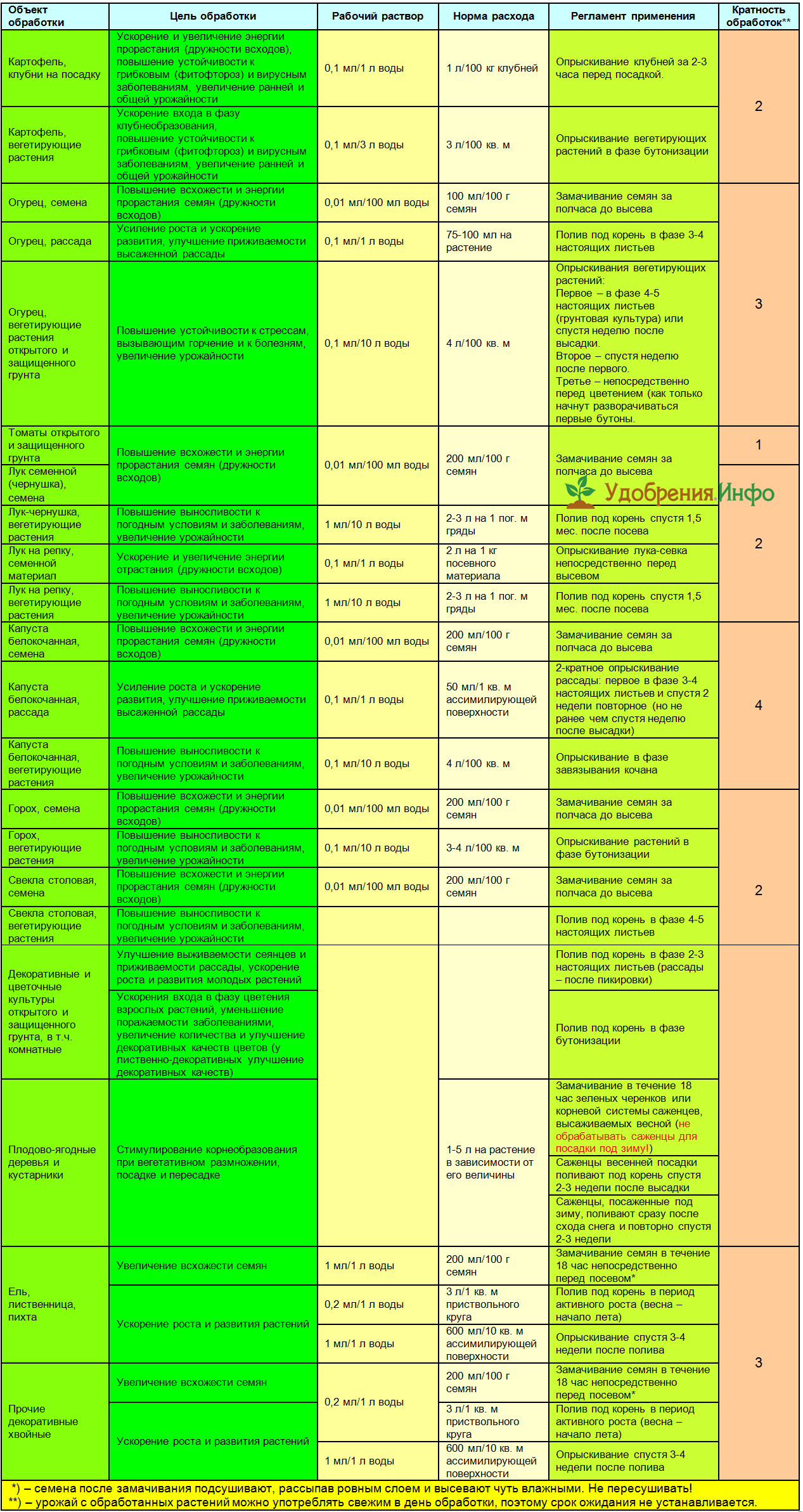 С целью опрыскиваний при бутонизации растения, а также для поливов в период после пересаживания в литре воды разводятся 1-3 капли. Обычно, бывает достаточно разового применения для получения нужного эффекта, однако допускается двух или трехразовое использование с интервалом не менее 7-10 дней.