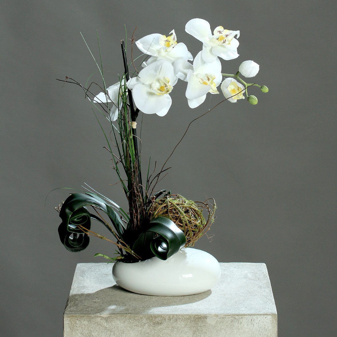 Особенно эффектно орхидеи выглядят в китайских керамических сосудах. Они представлены ажурными вазами на ножках, больше похожими на корзинку. В такой емкости корни цветка отлично дышат, хотя субстрат быстро высыхает.
