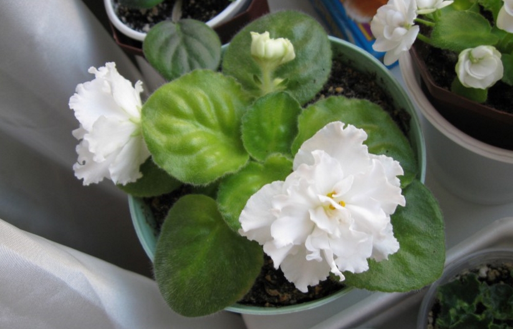 Взрослые фиалки Белая королева пересаживают каждый год, горшочки используют небольшие.