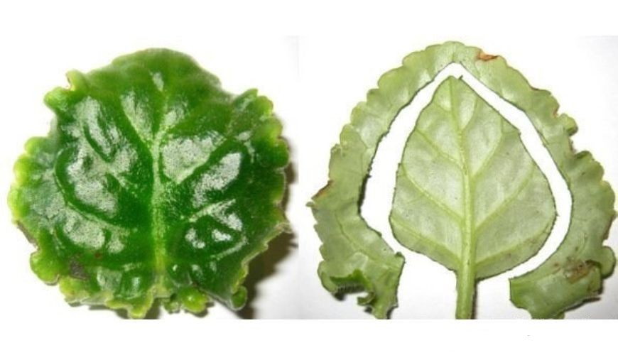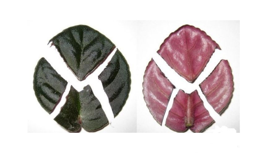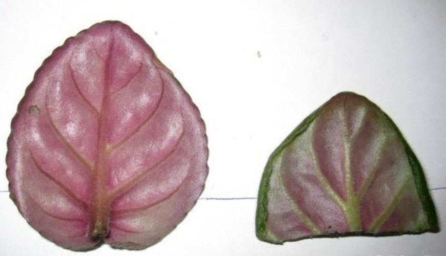 Полученные фрагменты листьев заглубляют переносным краем в землю или мох. Останется только поставить горшки в теплицу и соблюдать все правила выращивания и ухода.