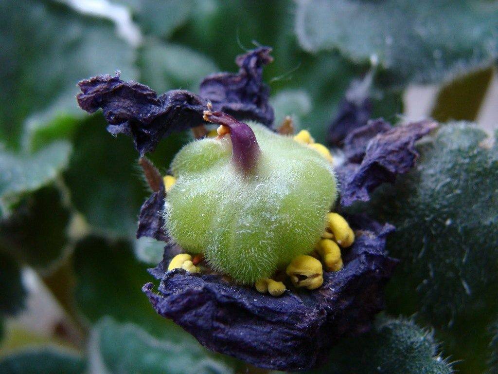 Семенная коробочка сенполии, содержащая множество мелких семян, имеет округлую, яйцевидную или веретеновидную форму.
