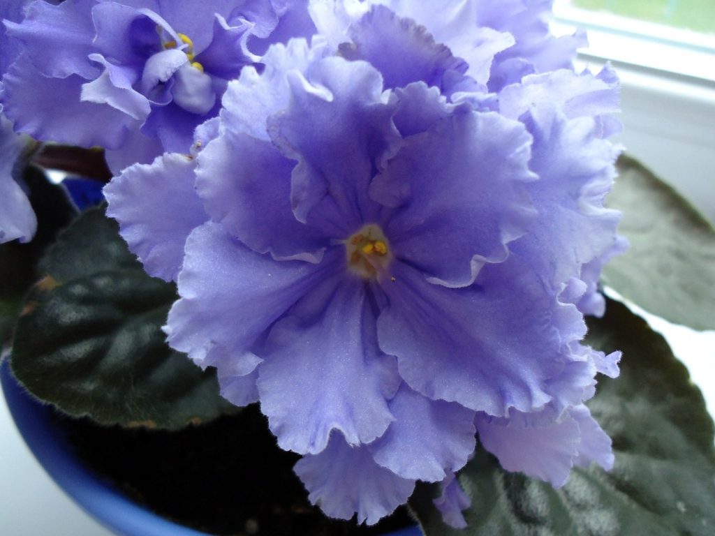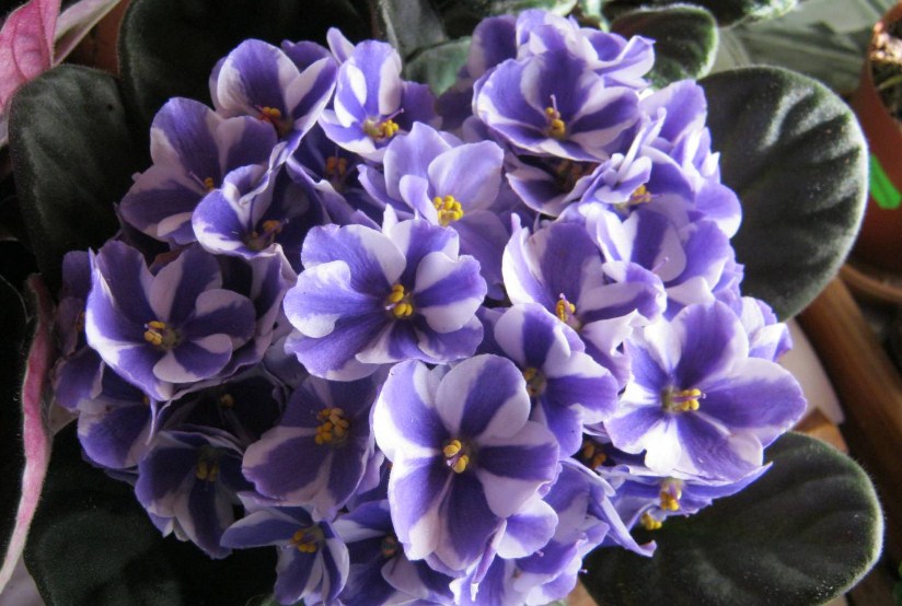 Одна из самых простых в уходе видов фиалок. Цветет пышно, завязывая сразу несколько бутонов. Расцветка синяя с розовыми пятнами. Невозможно отыскать два совершенно одинаковых цветка.