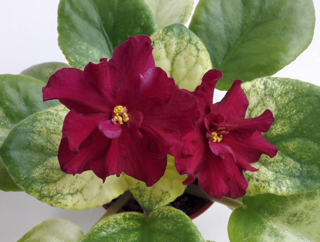 Фиалка бордовая бывает с полумахровыми цветками, с окантовкой и без нее.