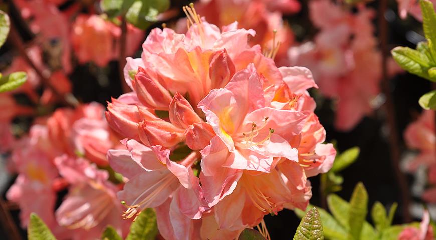 Наиболее популярны группы KnapHill, Exbury и Mollis. Это растения до 1,5 м высотой всевозможных окрасок. Зимостойкость варьируется, но у многих сортов хорошая.