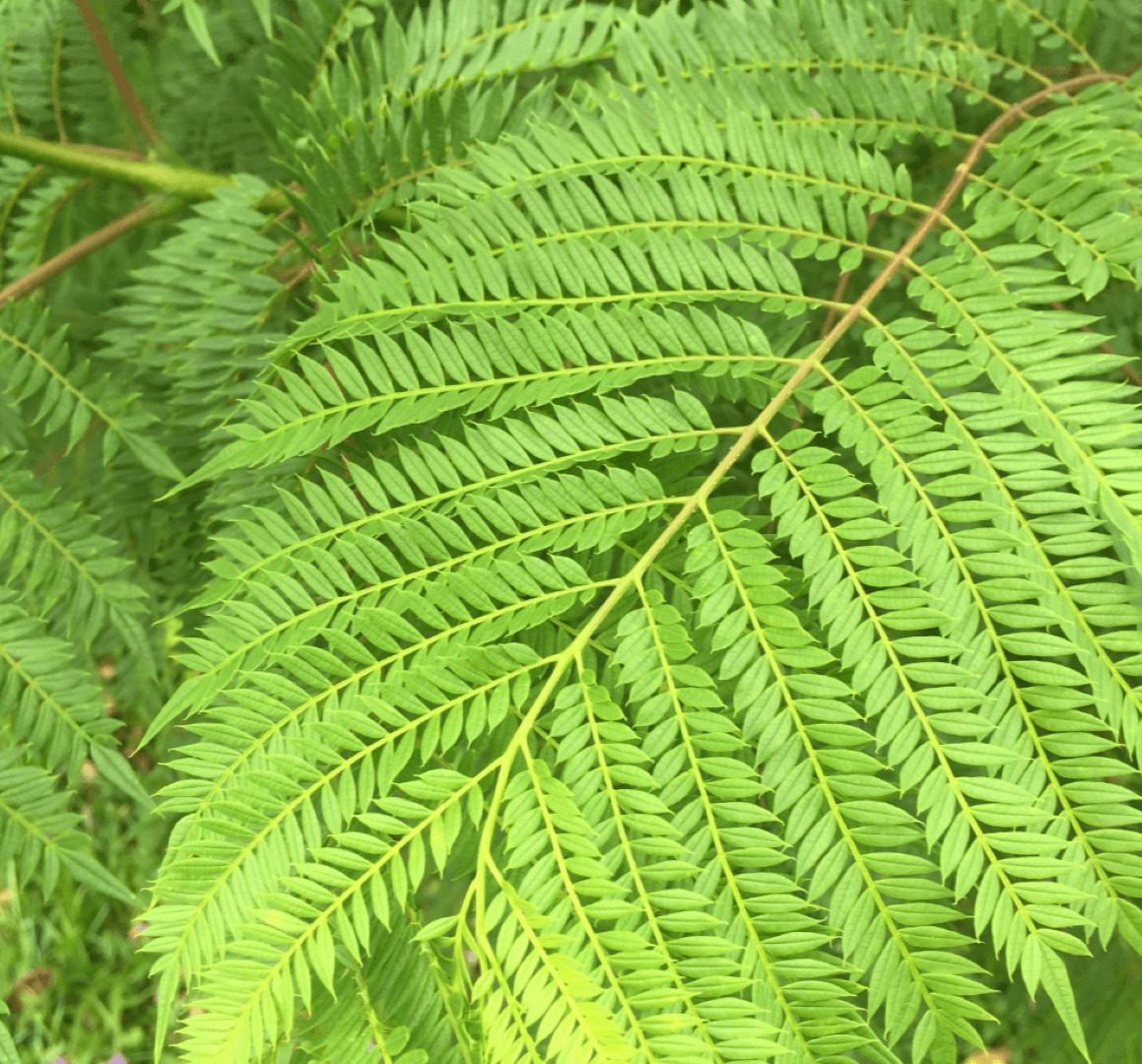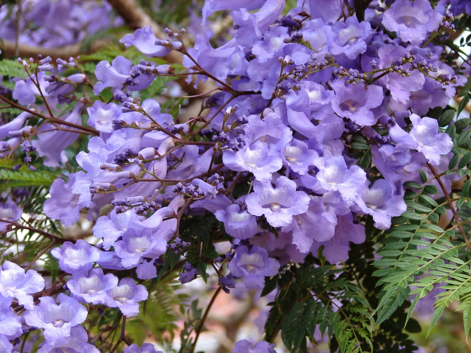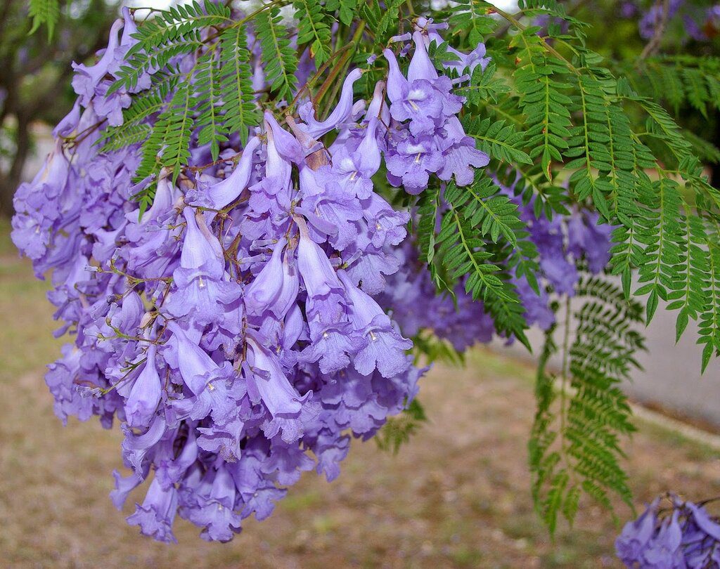 Жакаранда папоротниколистная может достигать 8 м в высоту. Ее листья больше, чем у других видов, напоминают папоротник. Они имеют красивый изумрудный оттенок.