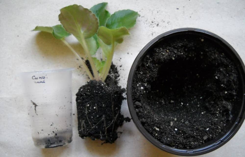 Как только черенок пустит корни, его можно садить в ёмкость с грунтом для фиалок