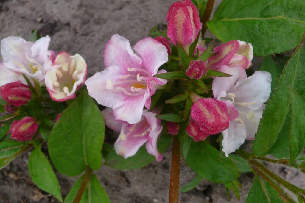 Период цветения у вейгелы Карнавал наступает в конце весны или в первой половине июня. Особенность сорта в том, что на растении могут одновременно распускаться розовые белые и красные бутоны.