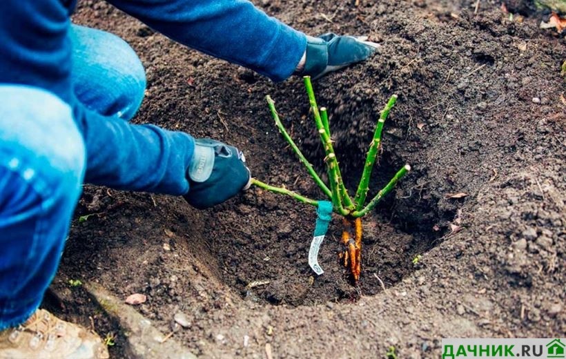 - Прививка должна находиться ниже поверхности клумбы. Если почва рыхлая, место прививки заглубляют примерно на 4 см, а если плотная – на 6-8 см;