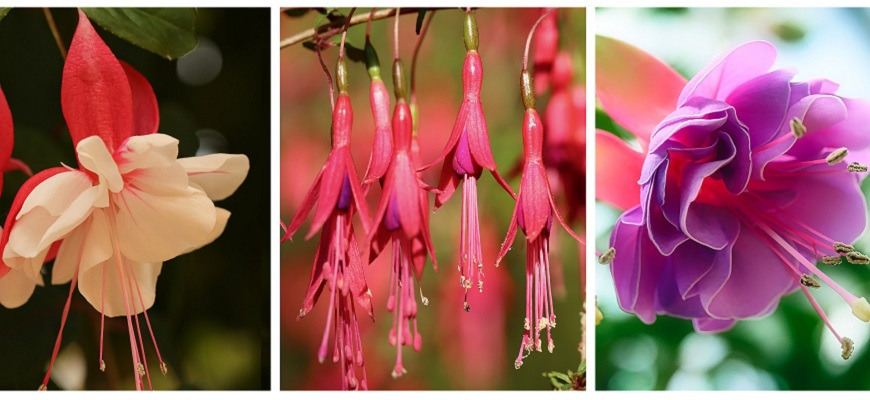 Среди художников названием фуксия обозначают пурпурный цвет. Но это растение дает бутоны всевозможного окраса. Некоторые сорта даже могут быть трехцветными.