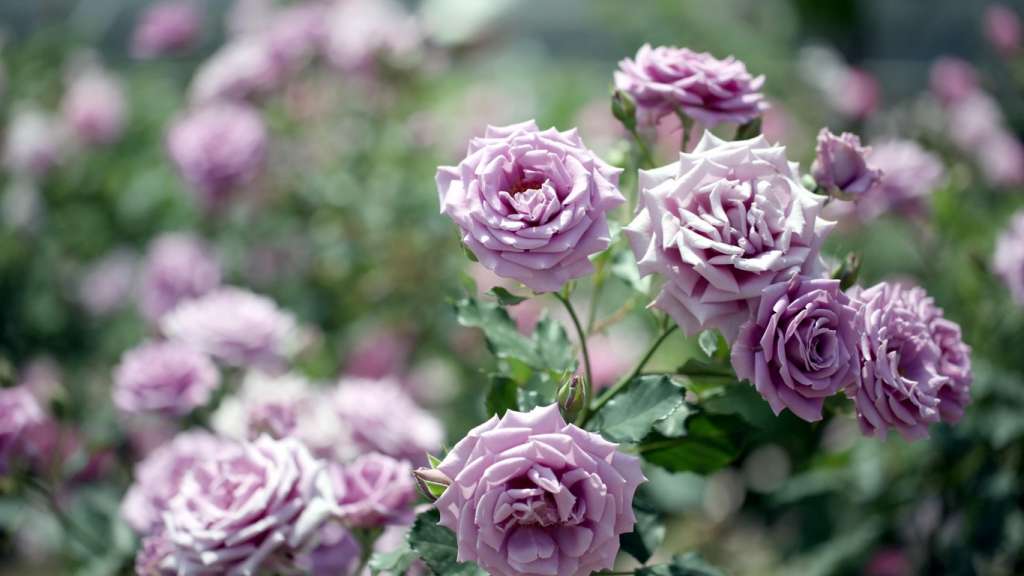 С утра розу должно освещать солнце, во второй половине дня нужна полутень. В этом случае сиреневые цветы не будут быстро выгорать.