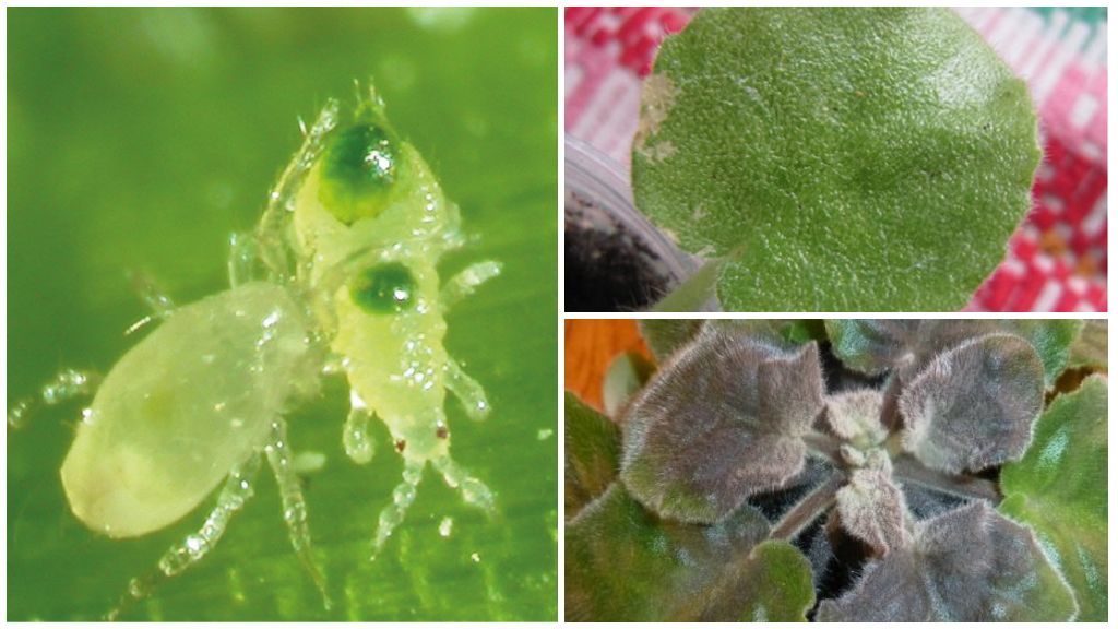 После укусов вредителей на листьях появляются небольшие желтоватые пятна. Со временем лист полностью желтеет, скручивается и опадает. При серьезном заражении фиалка начинает увядать, сбрасывает все листья и погибает.